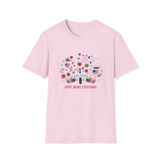 Merry Happy Everything 🎉 Unisex T-Shirt - Red, White & Blue Holiday Cheer!