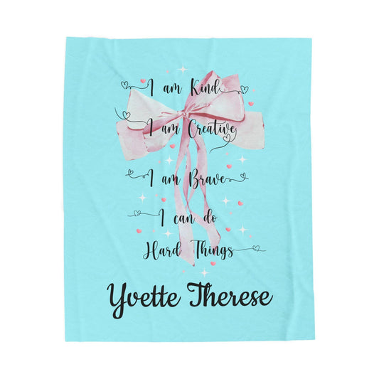 I am Kind, I am Creative, I am Brave, I can Do Hard Things Velveteen Plush Blanket - Personalizable