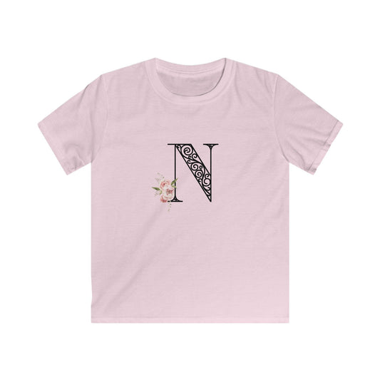 Floral Letters: Letter N - Kids Softstyle Tee
