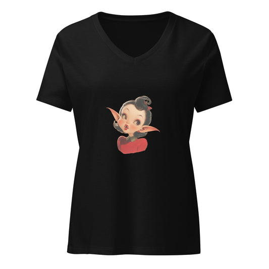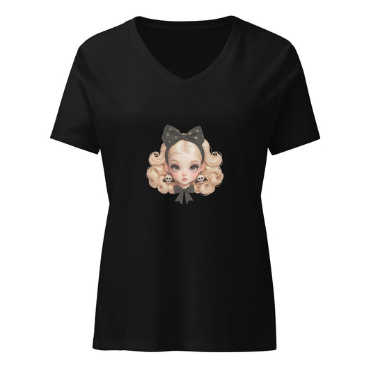 Fangs for the Fashion - Women's Relaxed V-Neck Tee - Embrace Spooky-Cute Style!