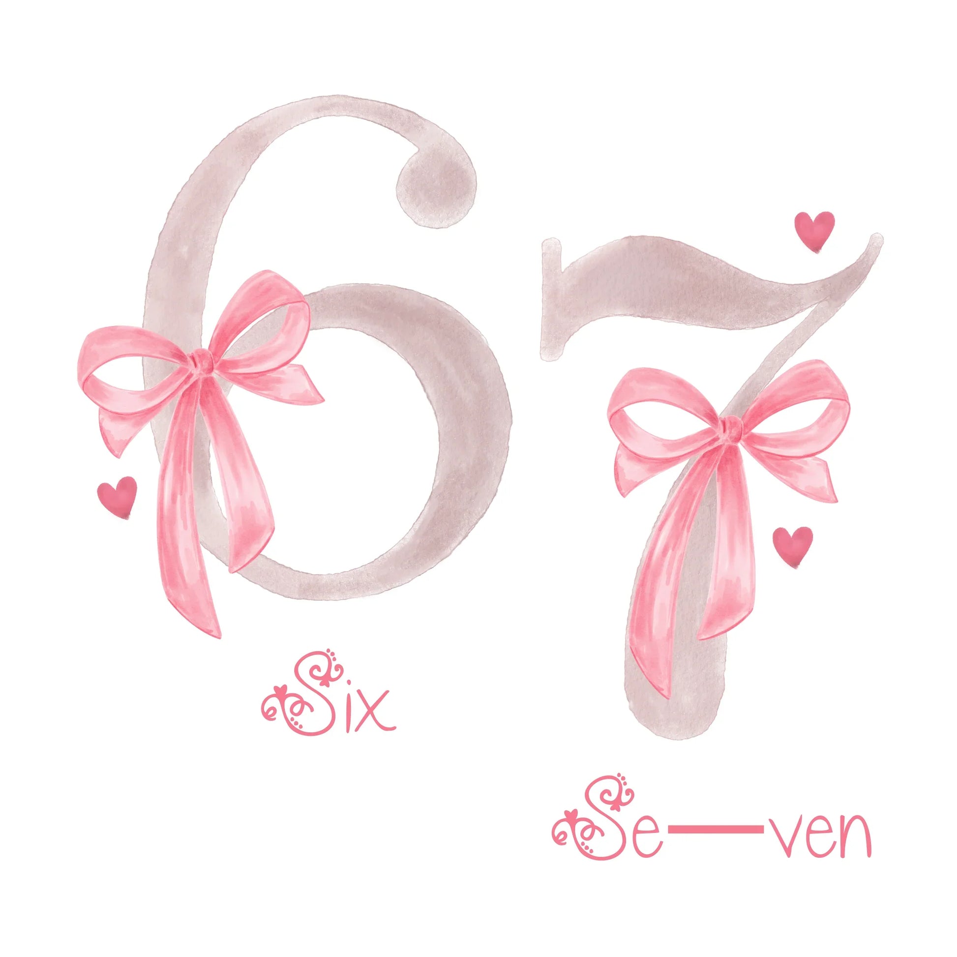 Introducing the absolutely charming "6 7" Pink Bow Princess Tee, now featured on the high-quality Next Level Apparel N3710 Girl's Princess T-Shirt. This is not just any top; it's a stylish, tailored shirt featuring a delicate watercolor design of the numbers "6" and "7," each adorned with a soft pink bow and tiny hearts. This gentle, sweet graphic is a beautiful contrast to the bold social movement it references, giving a subtle, stylish nod to the popular TikTok trend that has captured everyone's attention. This tee is designed for young princesses who want to feel comfortable and elegant while staying current with the latest youth culture.
