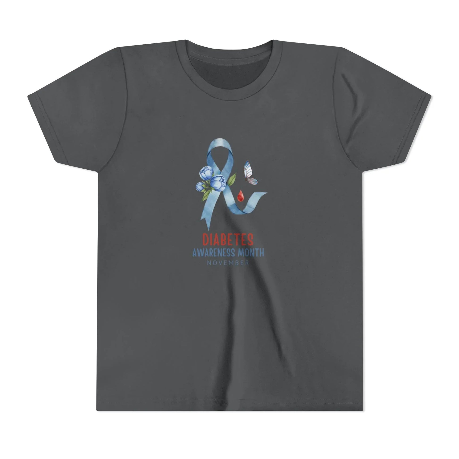 This hopeful and incredibly meaningful youth t-shirt features a vibrant watercolor design created specifically to promote Diabetes Awareness. The central artistic element is the light blue awareness ribbon, the universally recognized symbol for this condition. This ribbon is painted in soft, flowing watercolor blues, giving the design a graceful and supportive movement. Accompanying the ribbon is a symbolic element related to health and monitoring, such as a drop of blood (representing glucose monitoring), stylized in a gentle, non-clinical manner. The core purpose of this design is to foster widespread diabetes awareness and encourage crucial dialogue about management and care among young people.