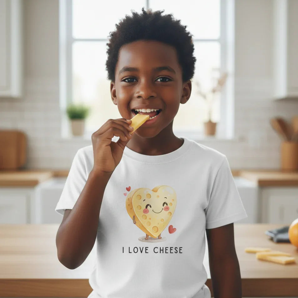 Whether you're celebrating a young foodie, searching for a silly conversation-starting top, or building a Valentine's themed outfit, this cheese tee brings joy, comfort, and playful style. It’s soft, customizable, expressive, and wearable year-round—not tied to a single holiday—making it a shirt kids will reach for again and again.