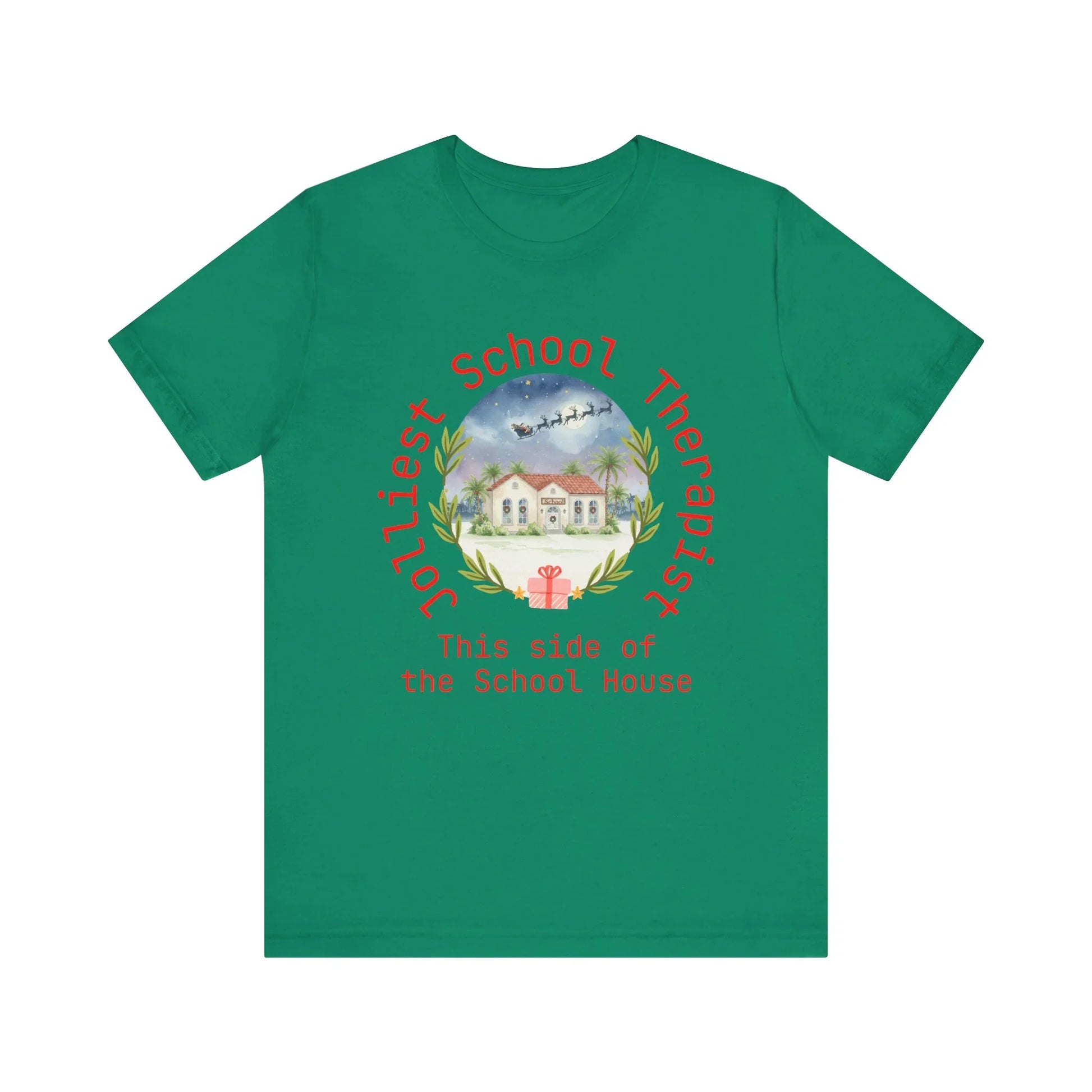 Celebrate the holiday season in customized style with the Jolliest Personalized Christmas School Tee! This ultra-soft, ring-spun cotton tee is designed for all educators and school staff, offering a festive and fun look for holiday celebrations, spirit days, or simply spreading cheer.