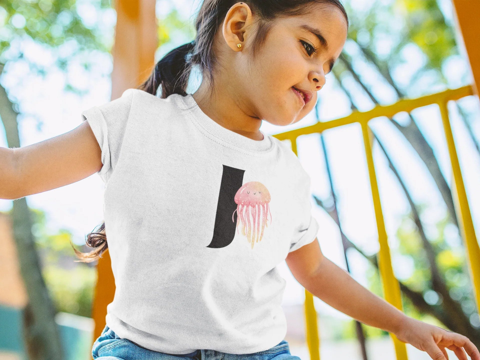 This is more than just an article of clothing. It's a great learning tool. It is a visual aid for the alphabet. It is fun to wear in the classroom. It is also great at home. The design is unique and memorable. It helps kids remember their letters. It helps them learn about sea life. The jellyfish letter J is a fun mascot. This kids jellyfish tee is a must-have.