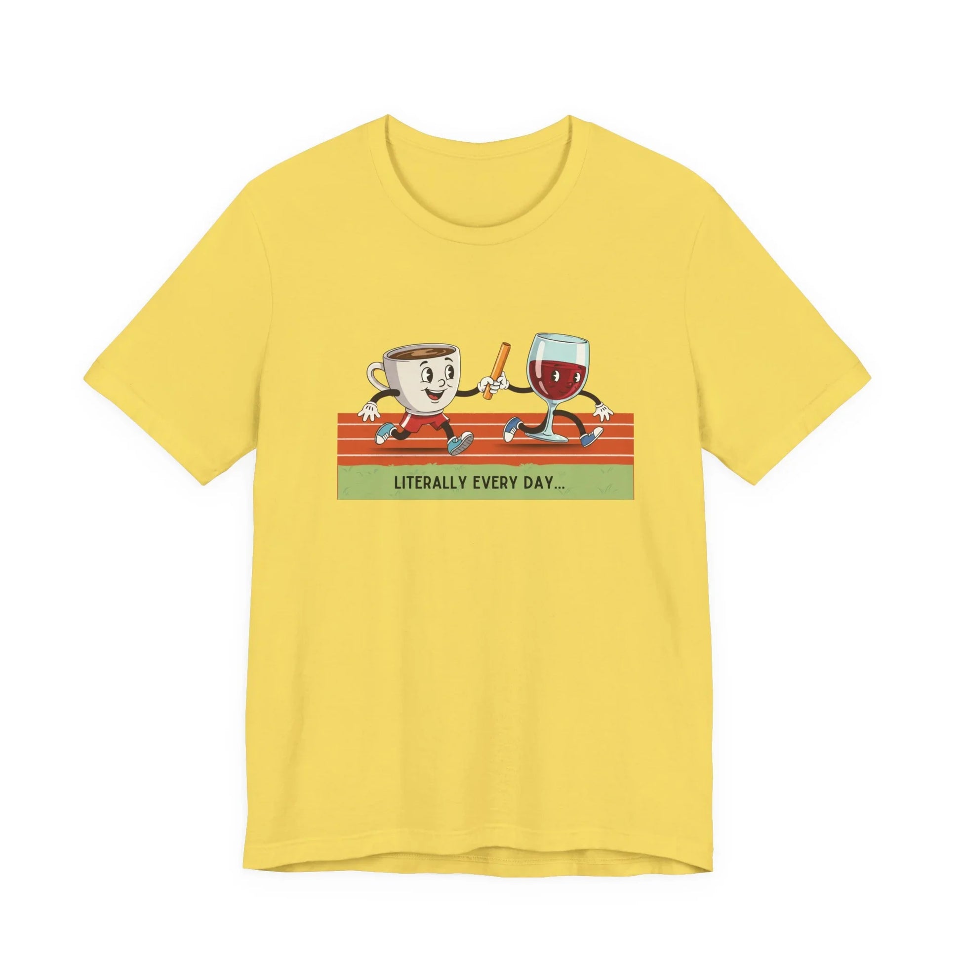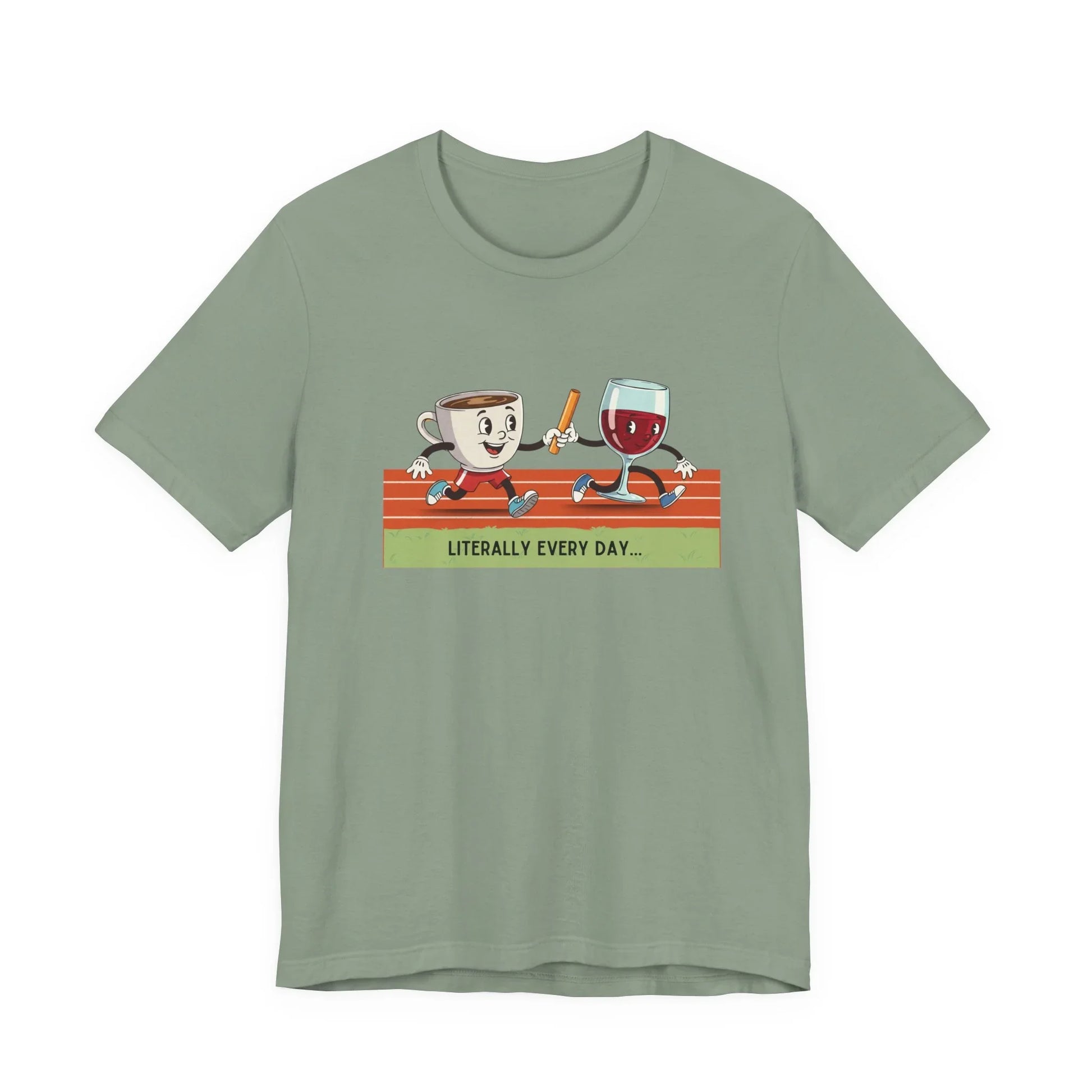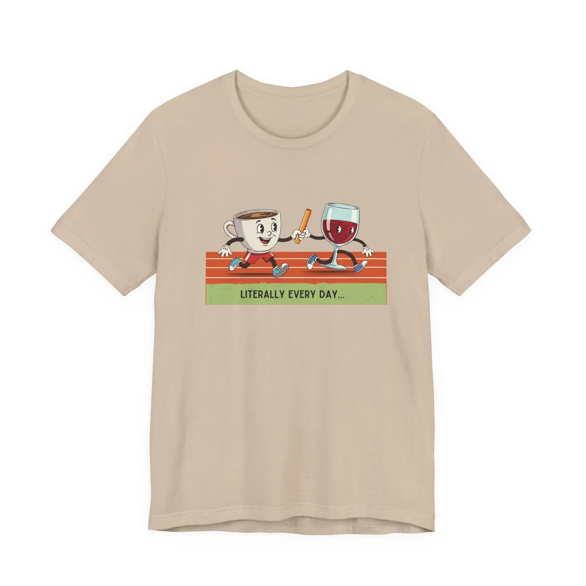 Literally Everyday Unisex Jersey Tee - ☕🏃♀️🍷 From Coffee to Cocktails: It's a Relay Race! 🍷🏃♀️☕