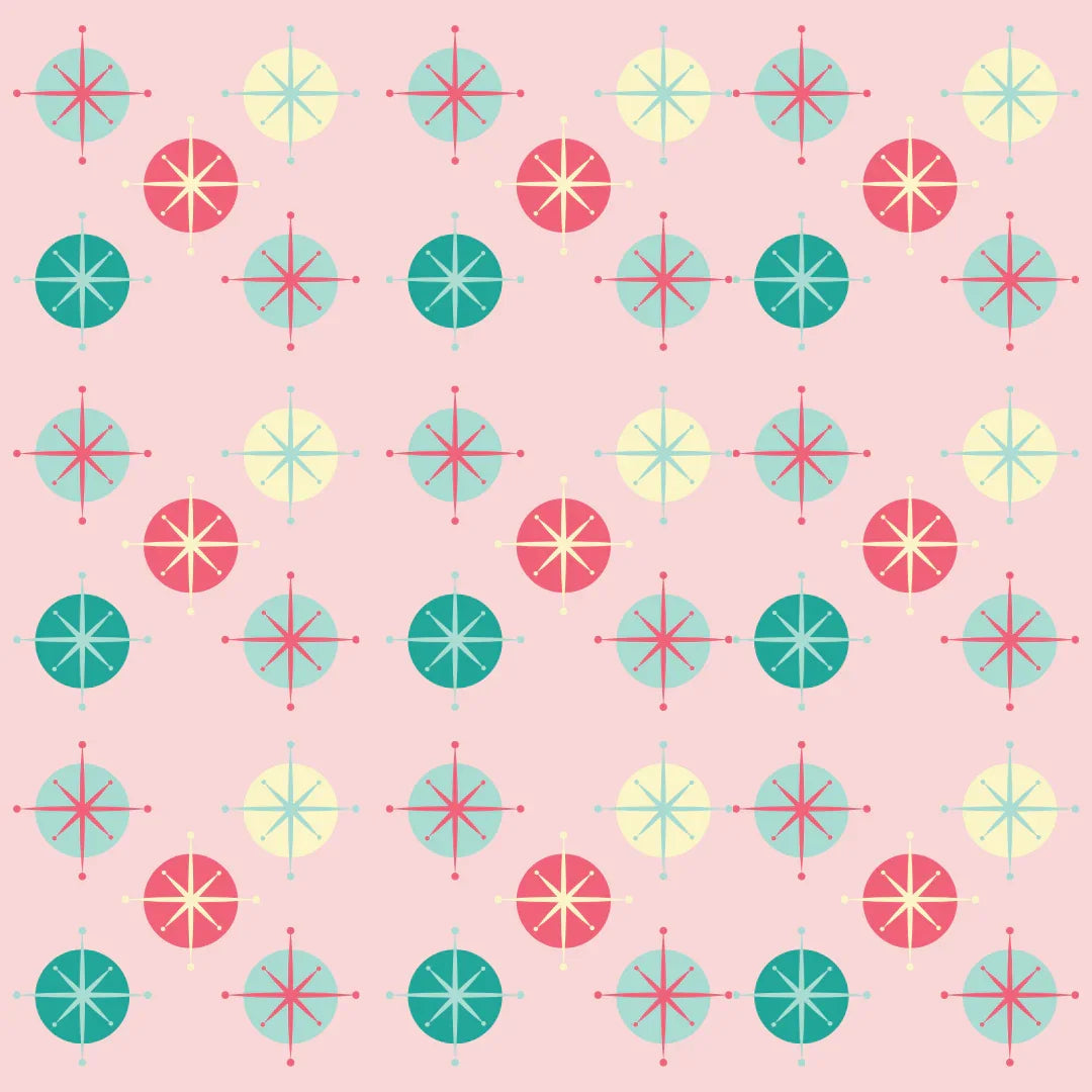 - Double-Sided Design: The front features the unique Mid-Century House illustration, while the back displays a playful pink atomic starburst pattern. This provides versatility for styling your space.